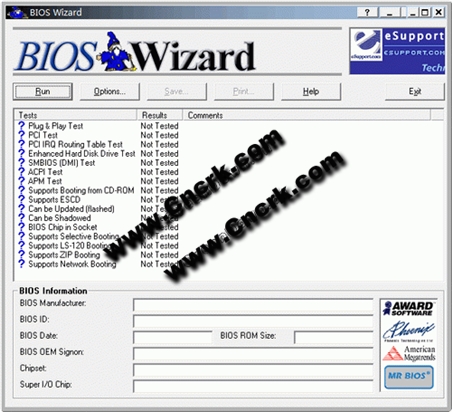 一个小巧的 BIOS 信息检测工具, 内置 Upgrade Now 功能, 可以方便的连接到 BIOS Wizard 的网站, 找到相应的主版厂商的 BIOS 更新页面, 自动进行 BIOS 更新. 其中包含一个 MS-DOS 程序 Detect.com, 可以将 BIOS信息写入名为 bios.bin 的文件中