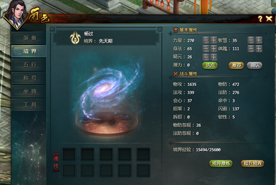 1.灵兽拥有力量、智慧、体魄、身法、精元等5项基础属性