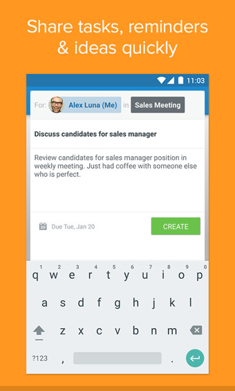 组织任务为你自己或团成员快速创建任务。增加目的任务、提醒以及请求。