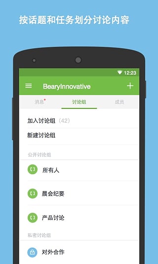 为工作场景打造的沟通体验,让效率飞起来:- 公开与私有讨论组;