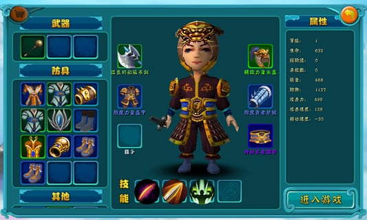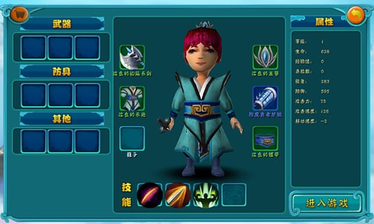 进入游戏--点击开始游戏,进入灭魔传进入角色操作界面--在这里可以给自己的武士穿戴上武器、防具和其他装备来增强战斗力。
