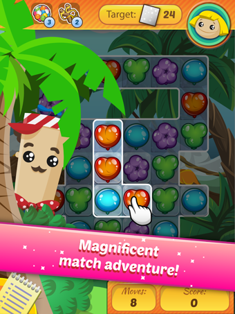 摩拳擦掌,准备好配对引爆彩色气球,在寻宝之旅中越战越勇。你将在海上乘风破浪,探索甜蜜的梦幻之地,见识繁华宏伟的城市,天地世界任你游历!在你逐步完成Suzie的派对气球配对引爆任务时,你将遇到令人紧张的高难度回合制智力谜题。你是否技巧出众,机智过人,能帮助Suzie成功抵达她的美妙目的地呢?还等什么呢?现在就接受Suzie的派对彩球引爆挑战!气球仙境邀请你加入:彩球对对大冒险!