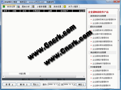 简单易用的家庭理财小管家,记录日常的收入消费开支,是您不可多得的家庭理财软件。功能虽然简单却十分实用。可随时查询不同时间段或不同消费品的消费情况,并提供各种分析报表,助您更好地了解您的消费支出,从而更好地掌管您的财富