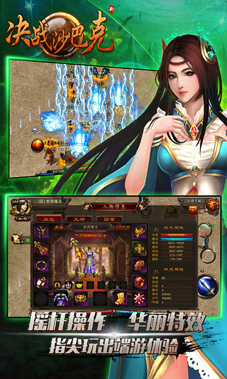 《决战沙巴克》是一款复古风的经典传奇游戏为蓝本的APRG动作PK手游。决战沙巴克将开启一场经典游戏内容与创新游戏体验相结合的完美热血征途。在游戏中,你将通过探索玛法大陆的各个角落、发现神秘沙巴克之城以及攻占敌对军团的阵营来取得城战胜利以获得无上荣耀。【游戏背景】