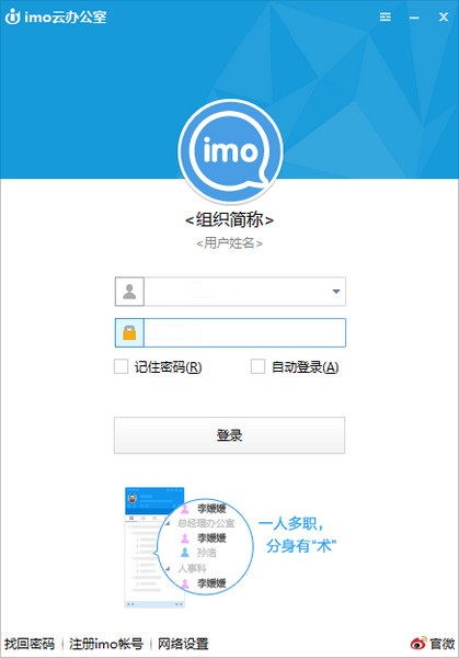 imo是企业即时通讯互联网平台,在“imo云办公室”里,每位员工由企业分配一个“座位(即时通讯帐号)”, 企业管理者可直观地了解企业的部门结构和人员情况,更好的管理掌控公司。无论身处何地,员工都可以通过文字、语音、视频、文件传输、电子公告、 电子传真、远程协助、电子白板等进行协同办公。