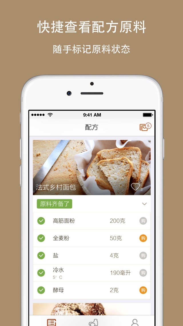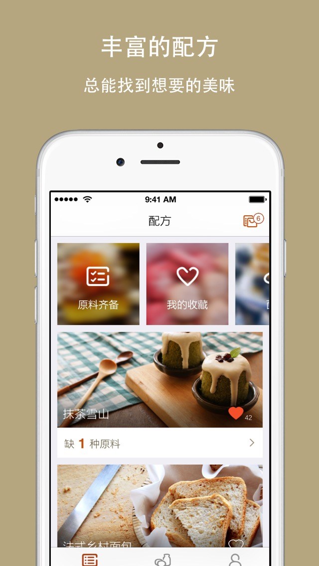 【数量丰富的各式配方】面包、蛋糕、蛋挞、曲奇、马卡龙、糕点、西点、甜点、早餐吐司、三明治、泡芙、松饼……各式配方和做法,总能找到您要的美味;更有精心挑选的低难度配方和面包机配方,烘焙新手和忙碌人士也可以轻松体验烘焙的乐趣。【根据现有原料筛选配方】每个配方都会提示原料是否都齐备或是缺了哪几样,更可以智能筛选出原料都现成的配方,再也不用到处翻找配方,费劲地核对原料是否都齐备了。