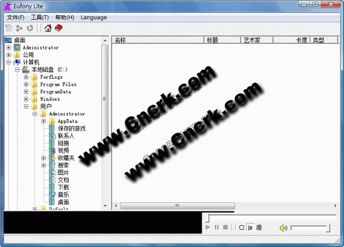Eufony Lite是一个多用途的音频播放软件(声音管理器 + 音乐播放器),用来管理、播放成吨的音频文件,可以处理宽范围的不同格式,能播放MP1, MP2, MP3, WAV (PCM, IMA ADPCM, ALAW, and ULAW), CDA, OGG, AAC, eAAC+, AAC+, TTA, FLAC, APE, MPC, VOC, G721, G726, VYF, M4A, WMA, AMR, AWB。非常容易使用,快速!你可以通过熟悉的类似资源管理器的舒适界面来轻松优美地管理、播放音频文件