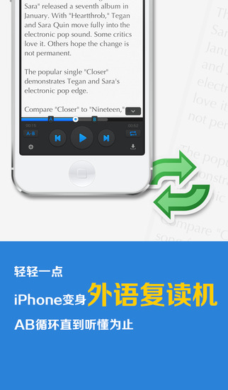 3、炫酷复读功能:轻轻一点,让你的iPhone变成外语复读机,AB循环,直到听懂为止;