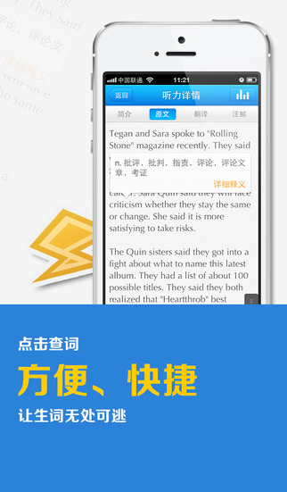 6、划词翻译:支持点击查词功能,方便、快捷,陌生的单词再也不能放过;