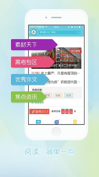 壹笔·素材天下是由课堂内外杂志和重庆市全媒体数字教育工程技术研究中心共同打造的一款专为中小学提供教育服务的移动终端应用。本次专门对各种海量素材和作文进行精心整理,并提供快捷搜索工具。特意为高考学子准备高考专区,多维度为应考支招。应用汇集优秀教育资源,并有名校、名师及教育机构大力的学习指导,真正实现寓教于乐。我们将一直致力于为广大学生创建快乐学习园地。【软件特点】