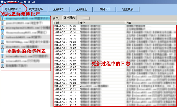 第二步:点击更新微博帐户,左侧栏会列出您在设置中心添加的帐号列表。