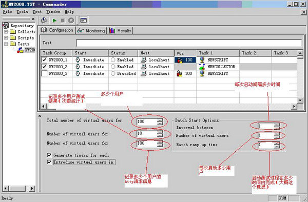 在Tests中新建一个NEWTEST,将测试脚本和性能指标收集器拖到该Test 中,如下图:
