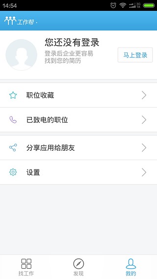 名企、热门优选工作一目了然。搜工作、搜企业让您快速找到您想要的工作。 加入工作讨论群,与大家一起找工作。 在广场参与话题讨论拿积分,兑换各种优惠,尽情玩在工作帮。移动互联网时代,手机找工作,就上工作帮!【软件特点】