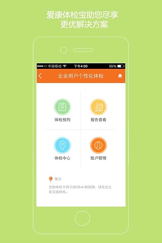 -爱康体检宝与ikang.com同步,让您随时随地即可预约体检。