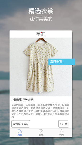 1、一款优美的,帮您挑选衣服的APP;2、美汇是我们的心血,她整体风格简约大气,给予用户全新的视觉体验;