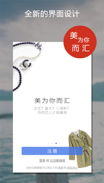 万千美丽,因你而汇!史上颜值最高的个性化购物APP来了!最In新品、独家潮流、美物每天更新;你专属的风格,你最爱的品牌,发现最新潮的设计师,发现最美的自己!1.网上最时尚的模特自拍,最新潮的设计师风格和最美的宝贝