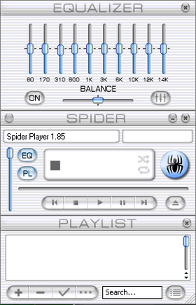 Spider是一个免费且小巧易用的音乐播放器。支持抓取CD单轨和音频格式转换。它具备与Winamp类似的音频均衡器,也支持ID3和WMA标签编辑,歌词编辑等等。
