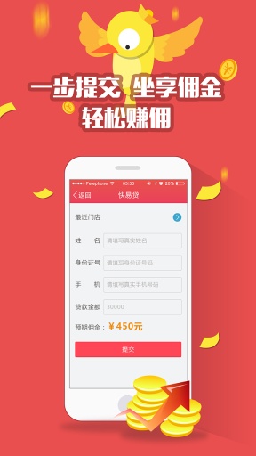 起点提供贷我飞下载,这是一款手机理财贷款应用。该应用可帮助用户轻松贷取小额数量的金币,还可以收徒帮助自己赚取佣金,只需一步提交,即可坐享佣金,轻松赚取金币。