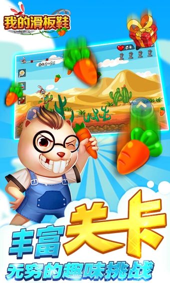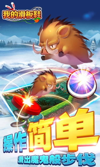 《我的滑板鞋》是一款乐趣无穷的滑板跑酷游戏,引爆新一轮的国民手游滑板热潮!没有过于复杂的操作设计,只需用两根手指控制一只杀马特的小兔子就可以轻松的进行游戏,一步两步,一步两步,搭配上轻快,逗趣的背景音乐,更是让游戏创造出更多的欢乐感。摩擦摩擦,似魔鬼的步伐 ~