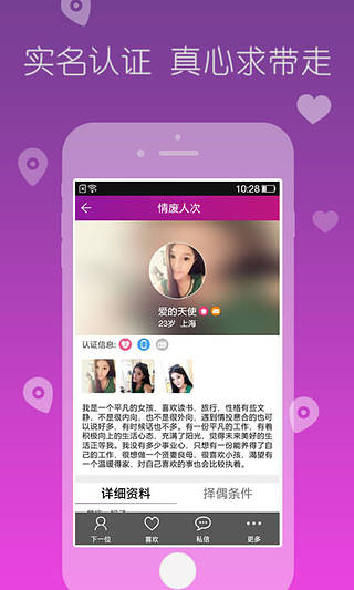 遇爱,高效同城在线找对象平台。为渴望找对象的单身男女而生。随时利用自己的碎片时间,在任何时间任何地点,第一时间联系心仪的异性,并且可查看近在身边的异性。
