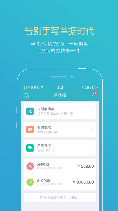 易快报是一款供企业免费使用的敏捷费用报销应用,满足企业员工和管理者移动办公的场景需求和使用习惯,是真正移动互联网时代的企业SAAS应用。“易快报”以全新的报销方式,取代纸质报销模式和传统在线报销,不仅能够帮助企业实现高效快捷的费用报销,还能让每个用户体验到全新报销方式带来的轻松和愉悦感,从此“让报销成为快事一件”。