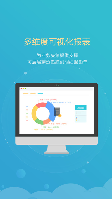 企业中的每一笔报销都会立刻反馈到我们精心设计的图形化报表上,管理者从中随时掌握整体趋势,把控部门开销。
