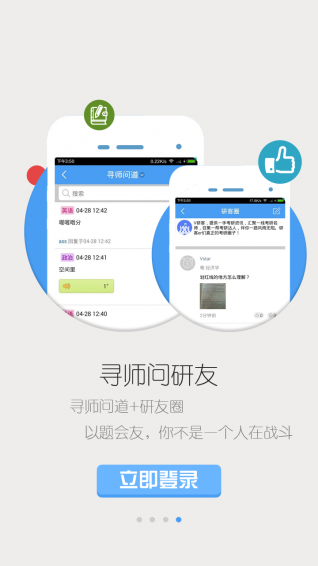 V研客是专为考研学子设计开发的一款手机应用软件,与V研客网站同步更新,为考研学子提供一手考研资讯,汇聚一线考研名师,为考研学子提供了一个互相交流经验,共享考研心得的线上平台! V研客,一个考研人的聚集地 V研客,一个研资讯的微天堂 天下考研人,生来是一家,携手V研客,并肩闯天涯!【软件特点】