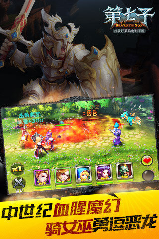 《第七子》是一款3D战斗类卡牌手游,根据同名电影《第七子》改编,故事背景设定在遥远的过去,在被幽灵格雷戈里羁押多个世纪后,邪恶而强大的女巫马尔金成功逃脱,随后便大肆招兵买马,复仇心切的她意欲血洗这个世界。多英雄养成、战场道具系统、战斗中换人系统极限丰富战斗策略性。影院级画质、电影原声音效、次世代引擎粒子特效、全360度不锁视角迷宫探险标志真正次世代3D手游来临。骑女巫还是骑恶龙?这确实是个问题!首款好莱坞电影手游《第七子》等你入座。