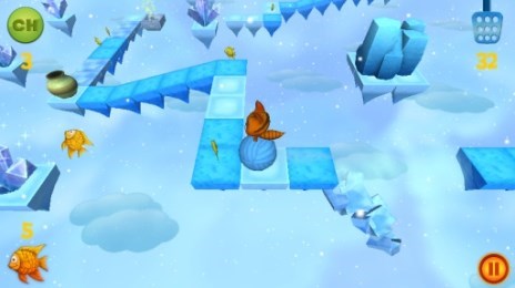 - 点击图标进入游戏,选择对应的关卡开始游戏后。- 采用重力感应系统控制小猫的走向,在不稳定的时候可以按右上角的刹车让小猫停下来。