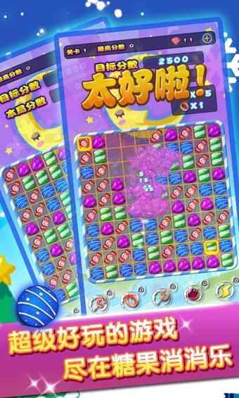 《糖果么么哒》是一款消除类的休闲游戏。其在玩法上仍然继承了三消游戏的经典元素。同时也融入了很多玩法和元素上的创新。在关卡类型上加入了很多有趣的元素。更有强力道具免费获取!【游戏特点】