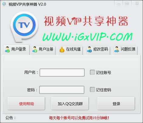 爱共享视频VIP共享神器是一款视频网站VIP共享软件,这款软件支持爱奇艺VIP、优酷VIP、乐视VIP、腾讯好莱坞和迅雷VIP账号共享,如果你不想花钱充会员的话,可以试试这款免费的爱共享视频VIP共享神器,绝对免费好用,欢迎下载!