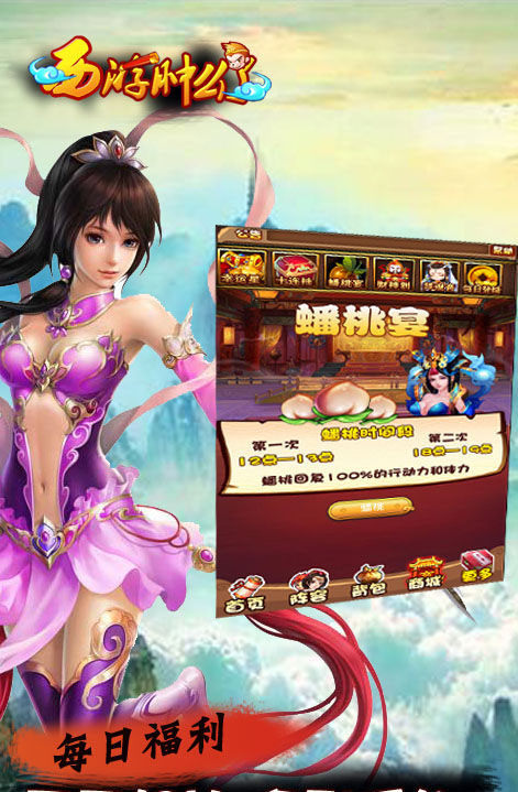 丰厚的福利——蟠桃宴、财神到、每日登陆领福利,可以每天领取