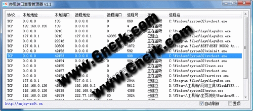 亦思端口查看管理器,可以快捷方便的查看电脑端口,及时防范病毒木马入侵。拥有体积小,查看方便,操作简单的特点,支持排序功能,支持XP、VISTA系统