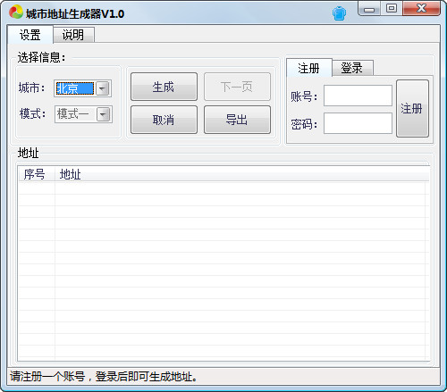 城市地址生成器,其实是一款小巧绿色的城市地址查询软件,该软件可以自主选择发货的城市,自定义生成,专用于淘宝收货地址的生成,淘宝卖家需要赶快拿下吧。