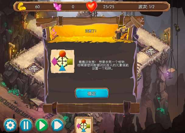 玩家将在游戏中担任指挥官,带领战士们冲锋陷阵,保卫家园。游戏共有20个关卡,玩家需要合理运用土、冰、火、阴四种魔法进行攻击和治疗。