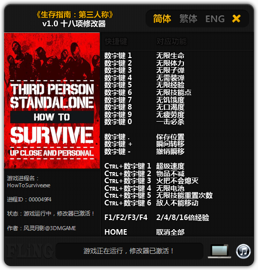 点击简体、繁体、English,可以切换语言 (切换语言后修改器将把该语言设置为默认语言)
