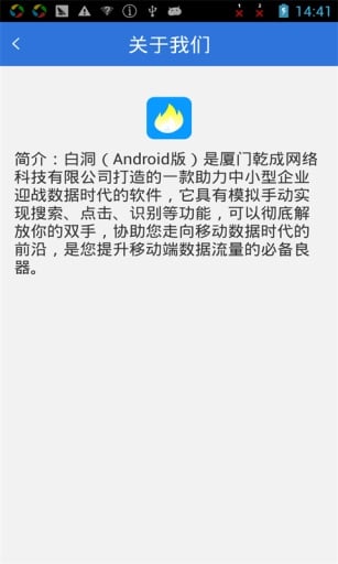 白洞是厦门乾成网络科技有限公司打造的一款助力中小型企业迎战数据时代的软件,它具有模拟手动实现搜索、点击、识别等功能,可以彻底解放你的双手,“洞”起来,在数据的海洋里,您不再是一叶孤舟,协助您走向移动数据时代的前沿,是您提升移动端数据流量的必备良器。【软件特点】