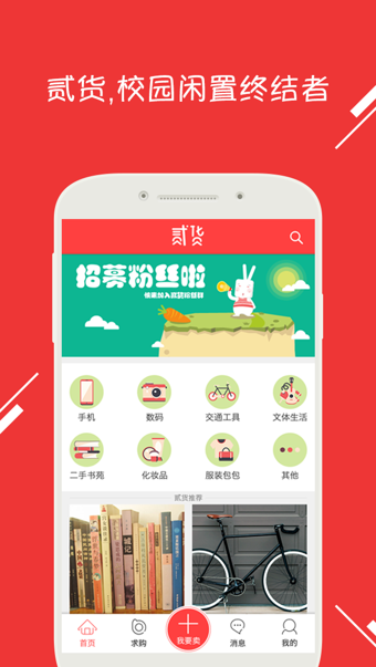 特色板块——求购,坐等闲置主主动回应。月初剁手月末哭穷?年中大促囊中羞涩?大品牌溢值性价比不高,小品牌质量难以保证。快来贰货,给你温柔的剁手体验。贰货闲置物品交易平台,没有淘宝的水深不可测。也不同于豆瓣闲置交易的高冷无保障。