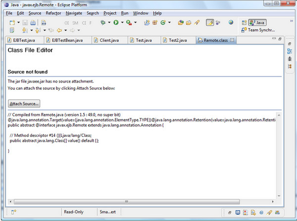 四、安装完成后,eclipse自动将JadClipse Class File Viewer设置成class文件的缺省打开方式。如果没有默认,可以在Eclipse的Windows——> Perference——>General->Editors->File Associations中修改“*.class”默认关联的编辑器为“JadClipse Class File Viewer”。设置完成后,双击*.class文件,eclipse将自动反编译。
