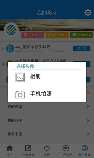 4. 新增“我的移动”的“个人头像”上传头像功能;