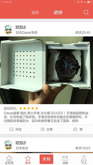 已完成交易的晒单,其他买家同一商品可发布求购信息;