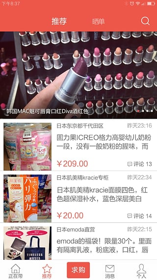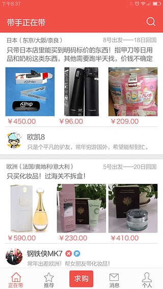 体验最真实的交友式海外血拼,旅行者实时自动地理位置定位,买家更放心!带手正在带功能,旅行者实时上传货物价格、尺寸等,买家更省心!