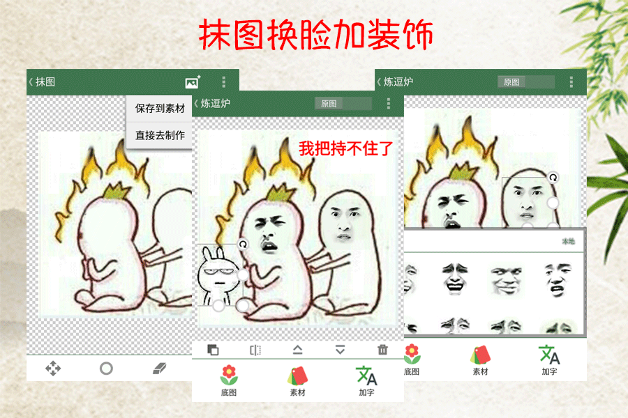 这款逗萁APP里面有不少较为“逗比”的搞笑素材,用户可以免费自由地使用这些素材,将其重新组合。APP内还摄用了撕图效果,用户可以发挥创意添加自己想要的特技。想要抹去原图的部分的内容,它也能做到。另外,图片DIY陈恭候,可以选择保存,或是直接分享到你常用的社交场所中。若要论UI设计方面,这款APP就完全符合它名字的风格,走得是较为粗暴的路线。接近2M的大小,不会占据你手机过多的空间。但是这款APP目前只有Android版本,限Android 4.0 以上用户使用。