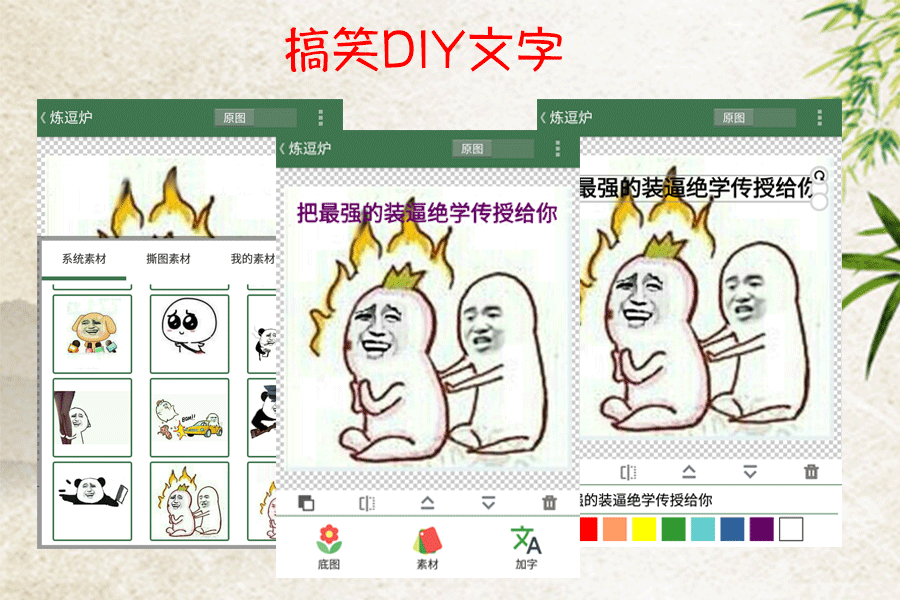 1.添加自定义字体(可导入字体文件)。2.增加手滑撕图(撕图痕迹更个性)。