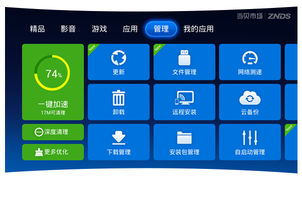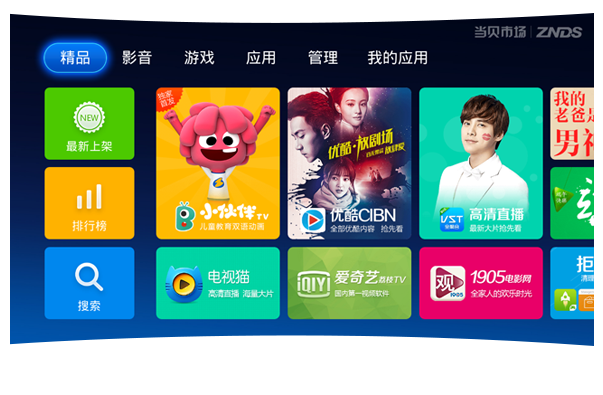 当贝市场是ZNDS网在2014年1月15日发布的智能电视应用商店,支持安卓系统,是一款专为智能电视和安卓电视盒量身打造设计的应用市场。