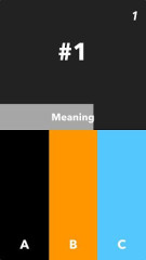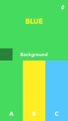 在进行游戏的时候,玩家能很轻易分别背景,文字,文字颜色,计时条和选项,这都是刻薄的功劳。从主界面UI,到游戏内的交互,以及设定界面的毛玻璃效果,主要都是刻薄来负责。Cee和琨也都参与在其中。关于游戏运行时的界面,他们还想过留白,即每个颜色都以卡片的形式表现出来,背景为白色。“因为觉得一开始的方案不能平衡留白和卡片的关系,所以就想直接不要留白了。”刻薄说。然后琨补充了一下:“其实应该也考虑了适配的问题。如果留白,针对不同屏幕以及横竖屏切换这些情况就比较难平衡了。”最后Cee总结了一下:“整个设计是我和刻薄娘两个人先画了线框图,然后做了个原型在手机上试着用了一下的,然后调整。”