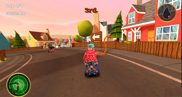 游戏的目的性很简单,赢得第一,并尽量收集各种道具金币,比赛中收集道具可以帮助你有效的击败对手,比如导弹可以炸毁对手的代步车,机油可以泼洒在路面让对手的代步车在移动过程中打滑,当然作为竞速游戏,加速类的道具必不可少。收集金币可以在让玩家更好的改装自己的代步车,让其性能更加优越。