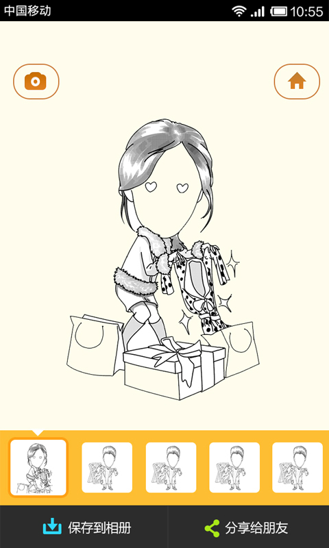 4、一键分享,共享快乐:生成漫画表情后,不仅可以保存到本地,还可以一键分享,无论是聊天还是做头像都只要一键操作。