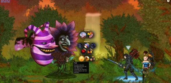 开发商 Enter Skies 就宣布 Fearless Fantasy 《无畏幻想》将有可能会在今夏发布移动平台,这是一款风格诡异的RPG游戏,回合制的战斗方式,通过特定的触屏手势实现角色的技能施展。故事讲述了一位名叫 Leon 的赏金猎人,他试图杀死国王的怪兽宠物,并拯救一个被卷入政治婚姻的女孩,而玩家所扮演的就是这个猎人。在游戏中,玩家可以操纵自己团队中的角色消灭一个个出现的怪兽,通过在屏幕上划动不同的手势,能对怪兽们造成不同的技能伤害,也可以帮助队友恢复体力等。根据视频所示,游戏的手势操作系统也非常适用于移动触屏设备上的,个人感觉要比鼠标操作来得更加顺畅。