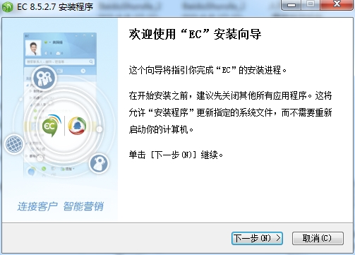 1、下载解压后进行ec营客通安装2、安装完成后打开软件,输入帐号和密码进行登陆,没有帐号的朋友点击免费组册按钮注册一个帐号。